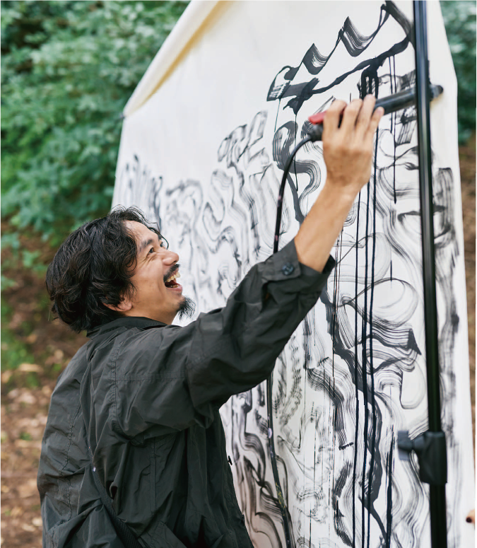 今回の撮影は、普段から散歩している馴染みの場所・慈眼山下の川沿いにて。自然の中で大きな絵を描くのは初めてでしたが、驚くほどリラックスしつつ、全身でワクワクを感じながら楽しむことができました。本当に最高の体験でした。ありがとうございます!