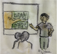 この日最後の活動は、木育活動の計画を立てること。班で話し合って1つの活動案を作る。アイデアを言葉で表現するのが難しいが、みんな意見を出し合い、それぞれの年代に合ったおもしろいアイデアがたくさん出た。