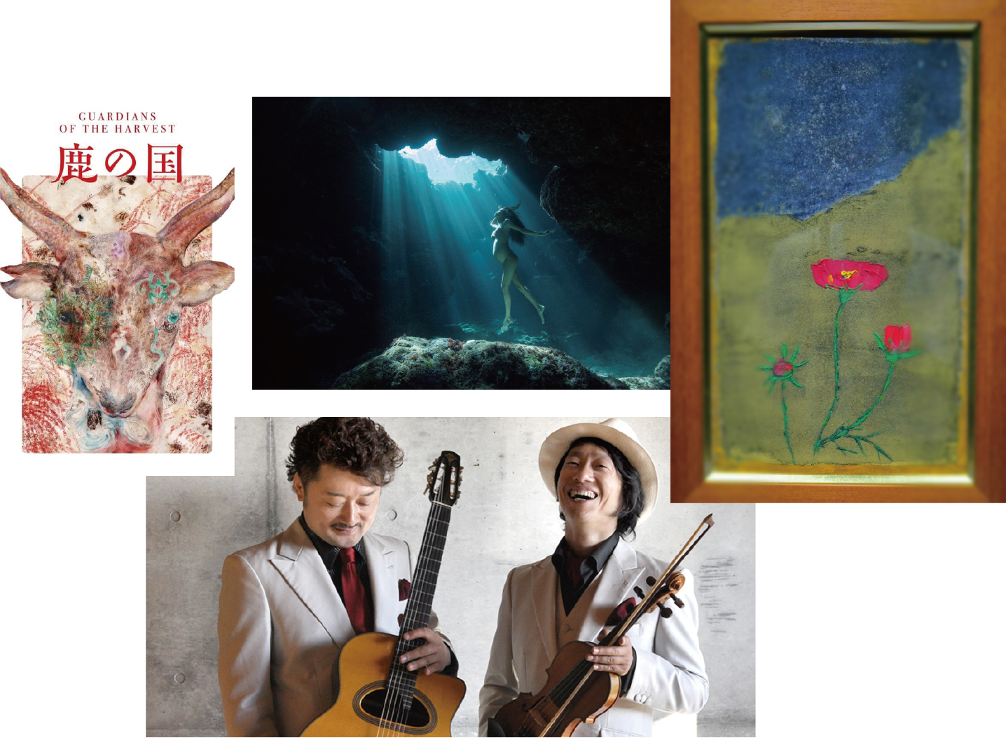 至る所という通り、たくさんの催しが行われているが、リベルテではバスキア、バンクシー、諏訪大社の映画リレーで〝ニューヨークからこの土地の力へ〟を表現し、ギャラリースペースでは敬愛する画家:牧野伊三夫の展覧会も開催。その会期後には、諏訪大社に縁ある芸術家:大小島真木の陶芸作品展も行う予定だ。さらに、豆田町にある天領日田資料館では『みんなの美術館〜コスモス〜』も開催中!香月泰男をはじめ、岩澤重夫さんの大作もずらりと並び、おかげさまで好評いただいており、偉大なアーティストのみなさまも天国で大いに喜んでくれていると思う。とにかく、こんな機会にこそ、いろんな世界に触れてもらえたら嬉しい。9日まで。
