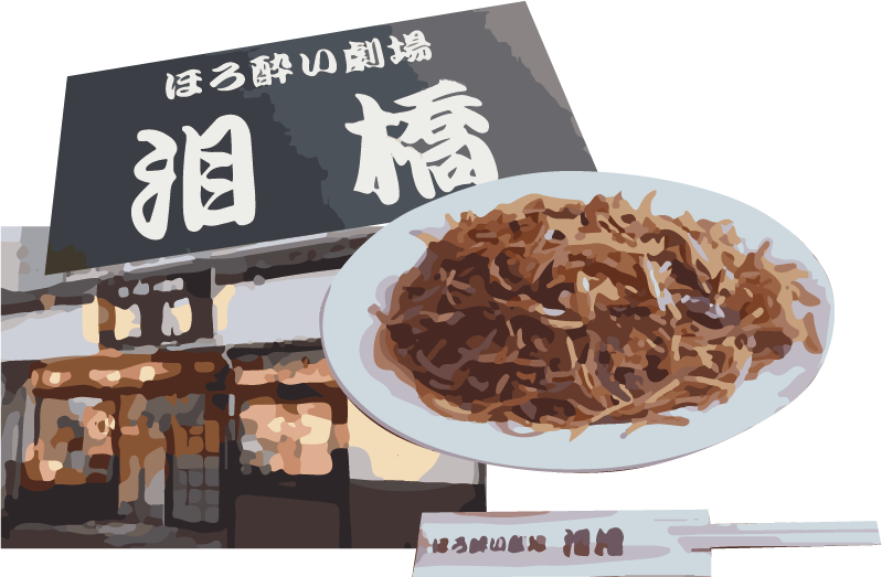 色んな思いとおつまみを肴に飲み続けた僕たちのほろ酔い劇場は良い感じで終盤へと差し掛かった。ここで泪橋さんと言えば、最近出しているあぶらーめんも良いが焼きそばだ。日田人の酒の締めと言えば昔は焼きそばだった。この泪橋さんではそれが今でも味わえるのだ。ここの焼きそばは気合の入ったパリパリ感が最高だ。日田で一番のパリパリだと言っても過言ではない。僕たちは締めに気合の入った焼きそばを黙々と食べてお店を後にした。寒い季節ではあるが、酒や食べ物や熱い思い出でなぜか寒さはそう感じなかった。なぜか懐かしい思い出の先に僕たちの新しい夢が待っているような気さえした。気合の入った焼きそばのせいかと冗談めかせながらも僕たちは熱い冬の夜を後にしてふらふらと歩いて行った。