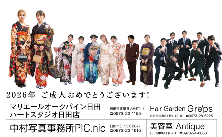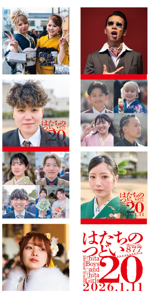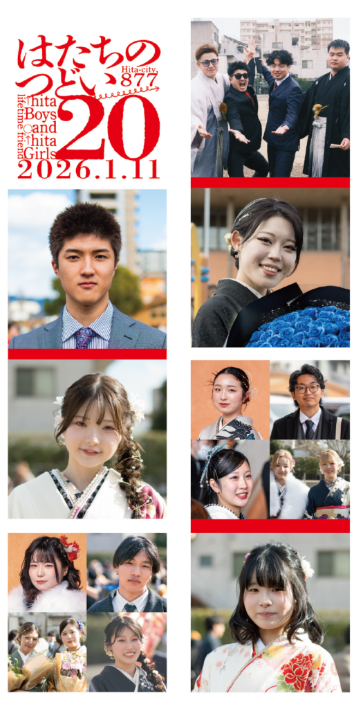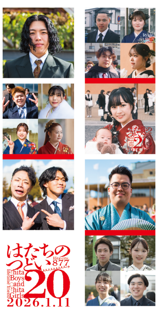 ◯日田市の人口→ 59,290人 ◯日田市の世帯数→ 27,725世帯(令和7年12月31日現在) ◯日田市で20歳の節目を迎えられた人数は605人(男301人・女304人) ◯日田市の20歳のつどい出席者は519人(男252人・女267人)出席率85.79%