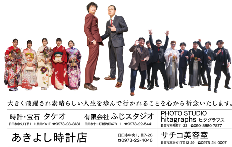 時代がどんなに変わっても、日田に居ても居なくても、同じ時間を経過している「友」がいる、寒いけどあたたかい「日田」が在る。そんなことを心に、青年よ安心して共に人生を謳歌しよーっ♪