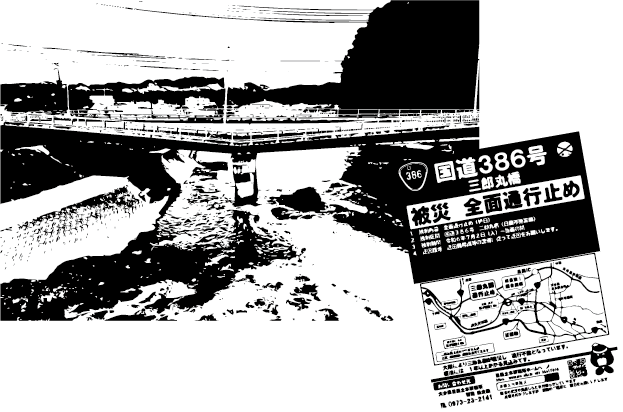 当たり前、当たり前、世の中は当たり前に溢れている。例えば僕はいつもふらふらと歩いているが、これは当たり前なのだろうか?足が有ってこそ道が在ってこそ歩けるのだ。橋が在るから川の向こうまでも歩いて行ける。しかし国道386号線の三郎丸橋は令和6年の豪雨の影響でずっと通られずにいるのだ。福岡へと行くのに当たり前に通っていたのだが、この橋が無いと本当に不便だ。