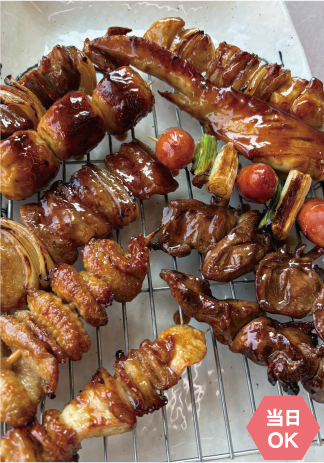 皮・ムネ皮・ウインナー・つくね 129円・鶏ハツ・鶏レバー・砂ずり 140円