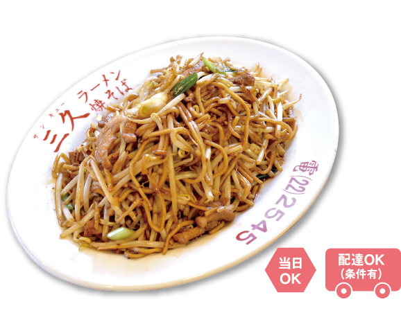 マイルドでちょっと甘辛の秘伝のソースが生麺を熟成させたこだわり麺に良く絡み相性抜群!