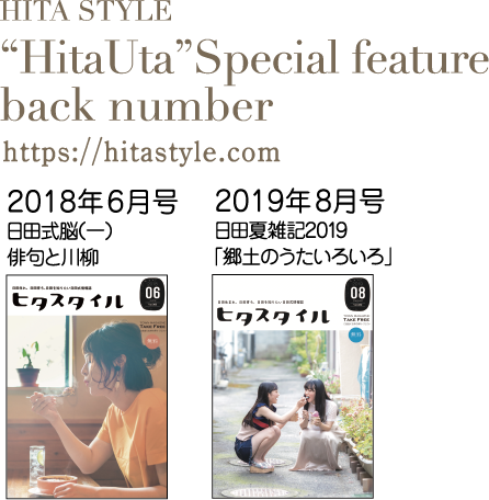 かつて全国を調査した有名な民俗学者柳田國男による民謡の分類(p6)には、何故か川舟や鵜飼の文字は見当たらず、仕事唄としては海ばかりだし、川で遊ぶような唄も記載が無い…。理由はわかりませんが少なくとも、「水郷日田の古謡・民謡」は、天領時代の名残として細くも繋がってきた「江戸っぽさ」が今となっては逆に貴重な特徴となり、今後益々その希少性は増し、改めて大きく見直される時が必ずくるのではないでしょうか。その事にとっくに気づき行動してこられた方々には敬意と感謝しかありません。