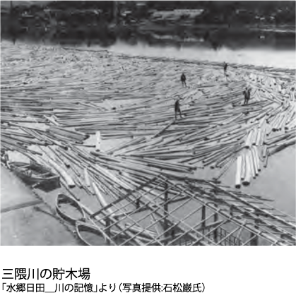 今回この曲をネットとCDで何度も見て、聴いて、一つ強く感じている事があります。まさにソコこそがこの曲の難関とされる「合いの手」部分の「ア(は)ぁコツコツ」の表現についてです。船頭さんの竹竿が舟べりに当たる音とか、鵜匠が鵜とのコミュニケーションで使う舟べりを叩く音など、何種類もの音を表現していると昔から言われています。全て合っているのだとは思いますが、もしかしたら、メインはやはり「三隈川に沢山浮かべられた、山から切り出されてきた杉丸太が水上で静かにぶつかり合う音」なのでは?と。あくまで個人的な分析ではありますが。上記写真の時代(昭和初期)の生々しい記憶が地域で薄れていくと同時に、意味合いとしても弱まり小さくなっていったのでは?と考えています。しかし、もしかしたら直接その音の記憶を持つ(あるいはそんな人物から伝授されていた)可能性が高いかもしれない五月さんの、その抑えに抑えた表現から、想像はふくらみ不思議と納得感が生まれるのです。…波のない水面に貯留された丸太たちが時折り風に少しだけ動かされお互いが静かにぶつかり合う、その時現れる、決して高くも激しくもなく、ふくみのある、水と木が奏でる独特の響き音…皆さんはどう思われますか?