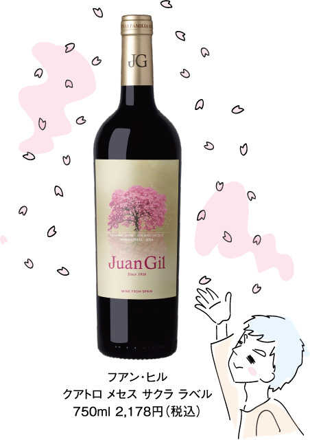 そんな春におすすめしたいのが、桜のラベルが印象的なスペインの赤ワイン「ファン・ヒルクアトロ メセス サクララベル」です。